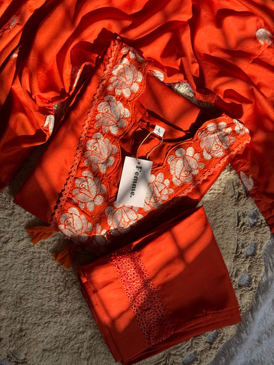 Elegant Orange Embroidered Kurta Set with Dupatta